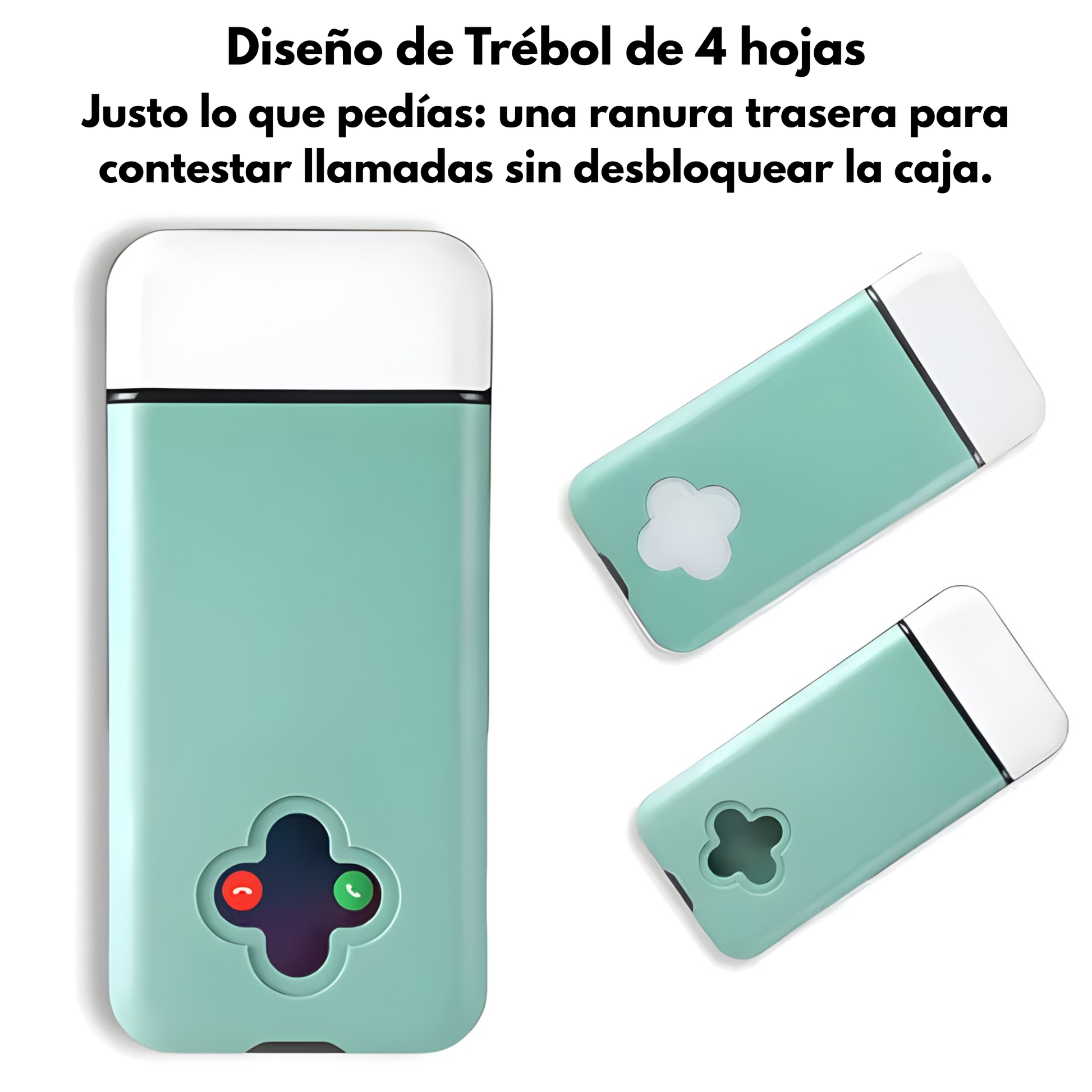 La tapa opaca elimina la ansiedad visual de las notificaciones. Gracias a la ventana en forma de trébol, puedes responder llamadas urgentes, aunque no podrás usar la pantalla táctil.